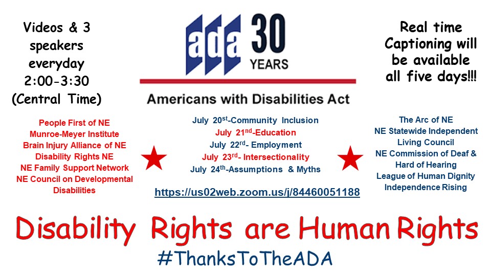 Several disability rights organizations in Nebraska are coming together for a virtual celebration of the 30th anniversary of the Americans with Disabilities Act!